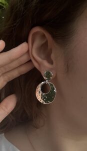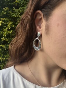 Metal 3 row pierced clutchless hoop earrings in 2 tone.